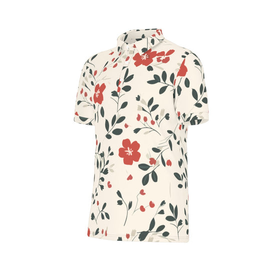 Men's Stretch Polo Shirt w/ red, green, grey floral